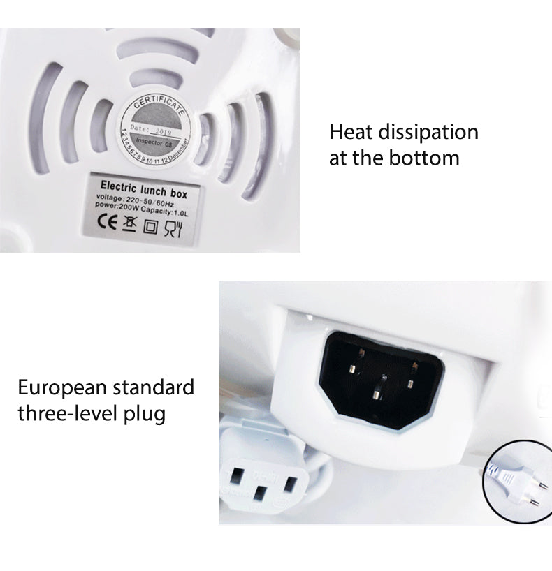 Instructions for use: 1. Add water 2. Place food 3. Use